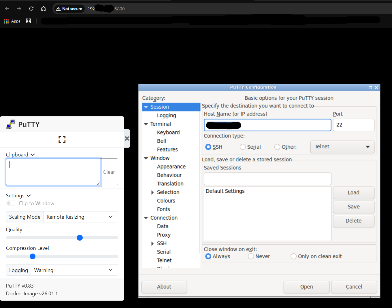 - VNC_PASSWORD=YOUR PASSWORD # yuor password to secure putty