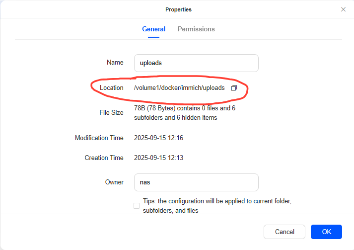 /docker/immich/uploads : uploads go here